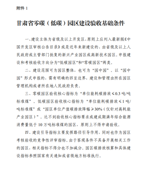 地方政策《甘肅省零碳園區建設方案》:5年建成10個左右零碳(低碳)園區